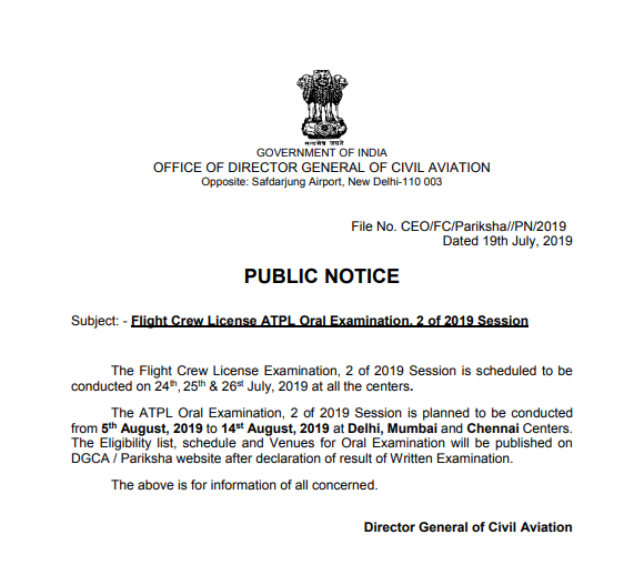 July 22, 2019 aviationsafetyindia DGCA issues Public Notice : Flight Crew License ATPL Oral Examination, 2 of 2019 Session Share this: Share on X (Opens in new window) X Share on Facebook (Opens in new window) Facebook Like Loading... Related